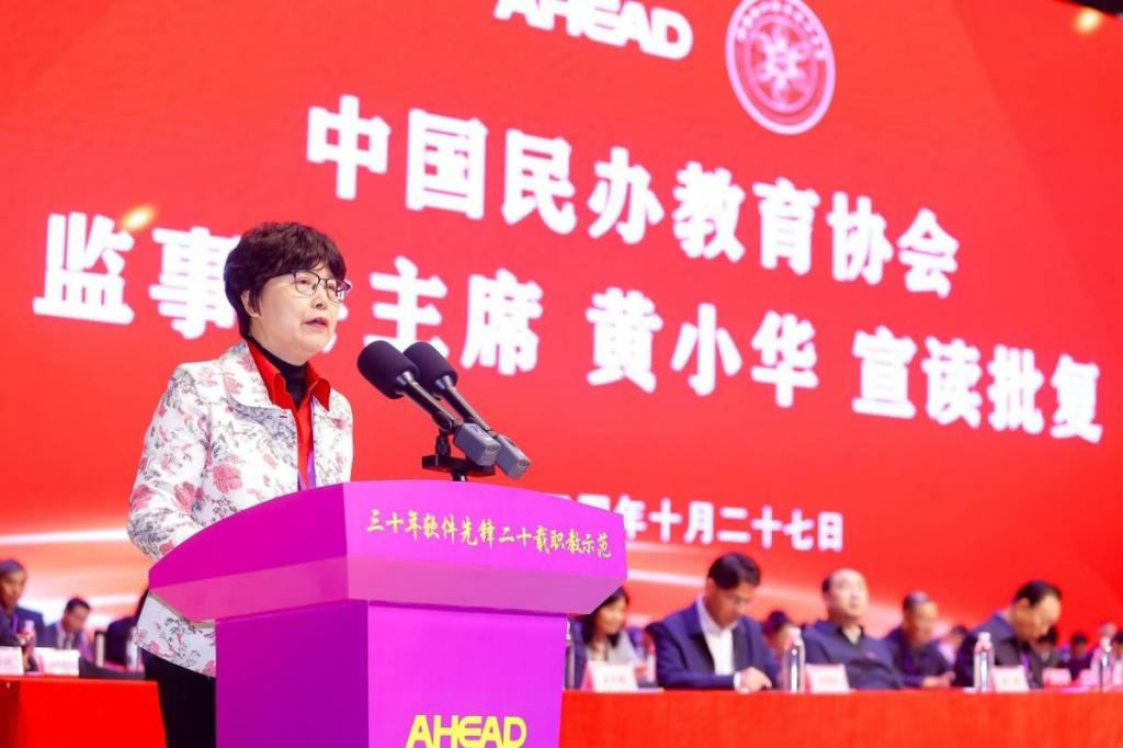 中国民办教育协会监事会主席黄小华宣读《关于同意成立中国民办教育协会职业本科教育专业委员会的批复》。